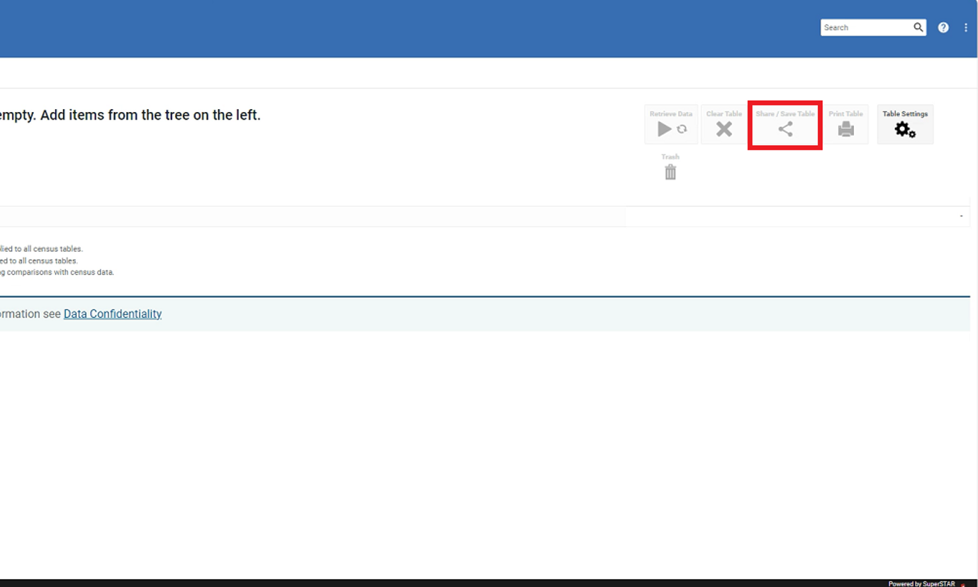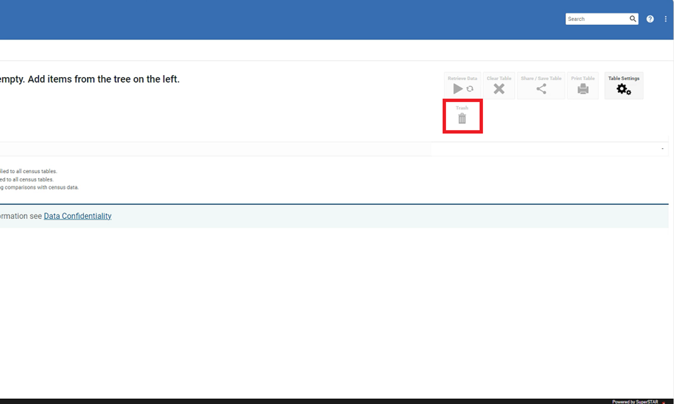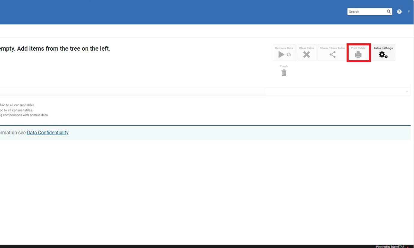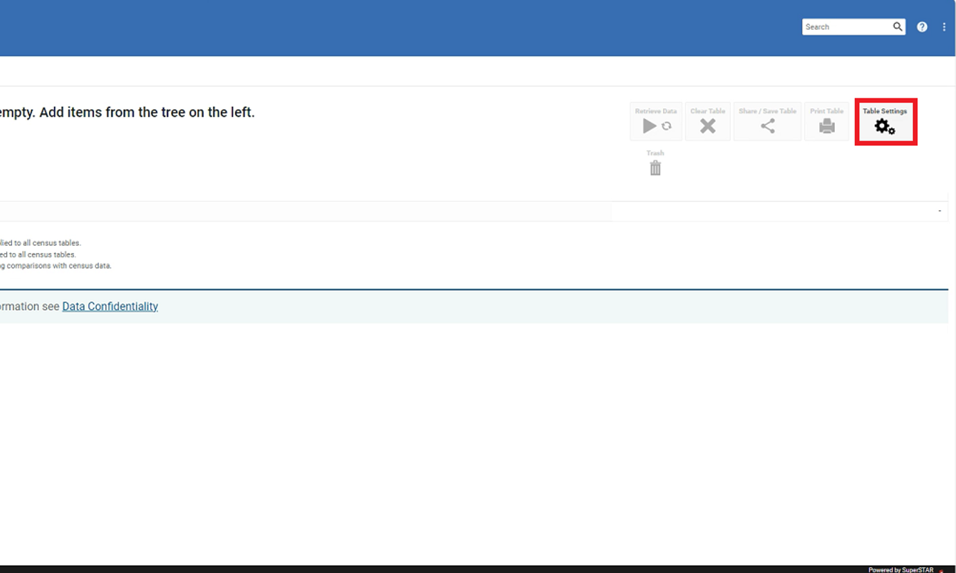 Retrieve Data – once you have selected the variables you wish to use in your table through the dataset manager, click this button to have the table viewer load the data for those variables.