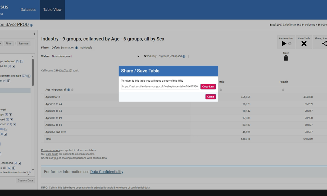 - Check if the variables you are interested in have less detailed alternatives available (for example, instead of using the Industry – 22 groups variable with Ethnic group – 21 groups variable, using the Industry – 9 groups variable with the Ethnic group – 8 groups variable)