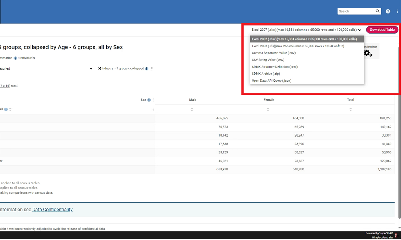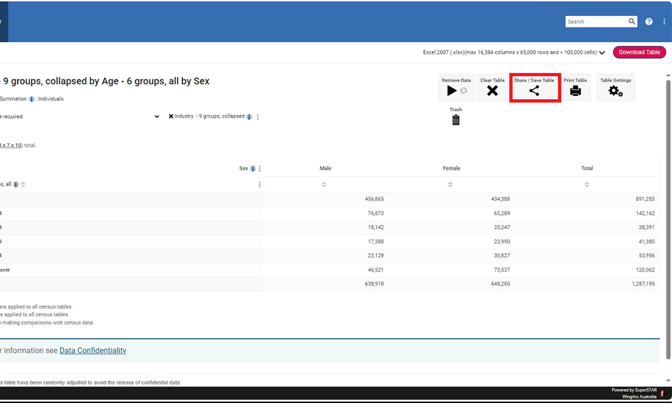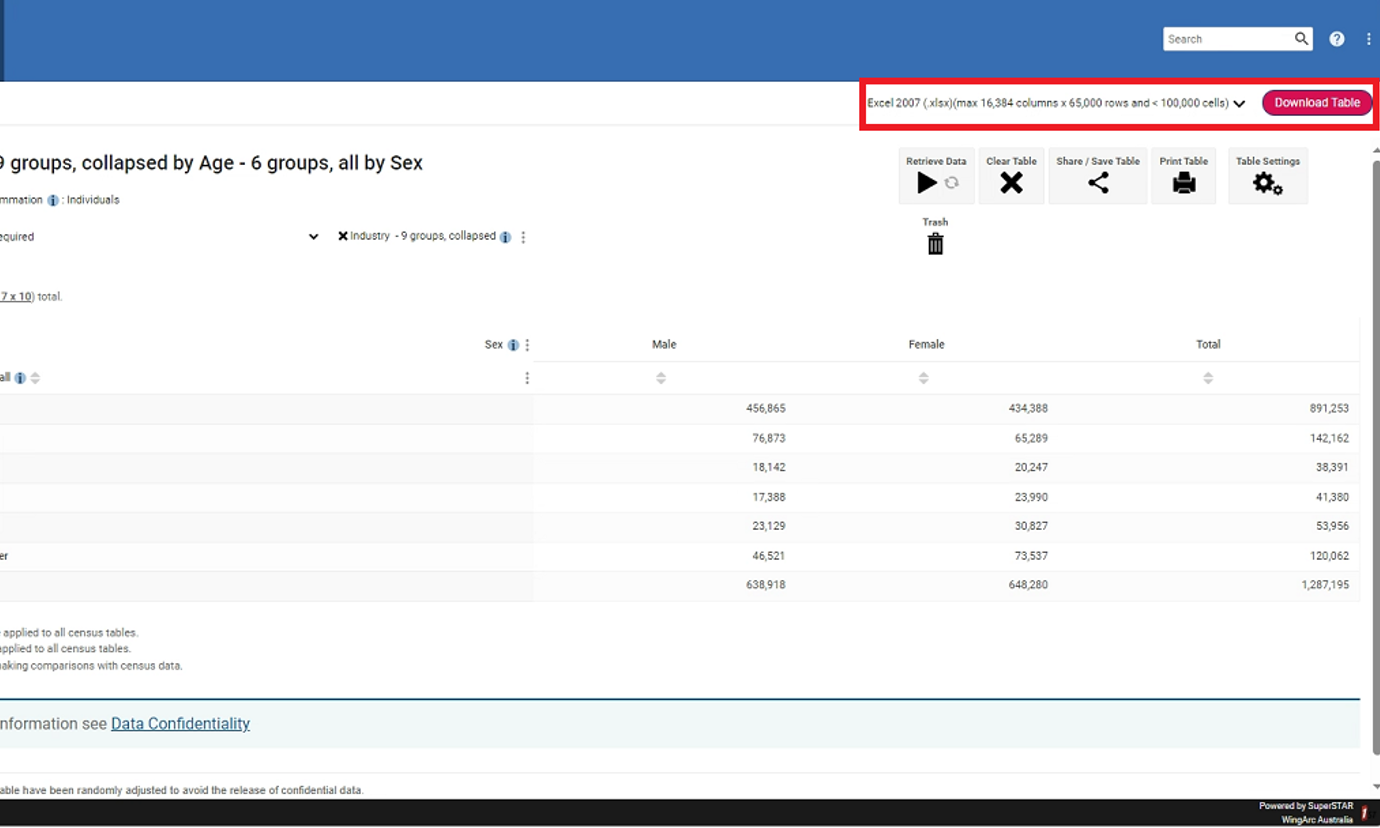 Due to the requirement of protecting census participants’ data and the duty to ensure individuals and households cannot be identified through Census data, users will not be able to build certain tables. This will either be because a certain combination of variables has been identified as risky and is prohibited, or because the table a user is trying to build exceeds the maximum allowed cell count (61,640 cells). In these situations, we recommend following the steps detailed bellow: