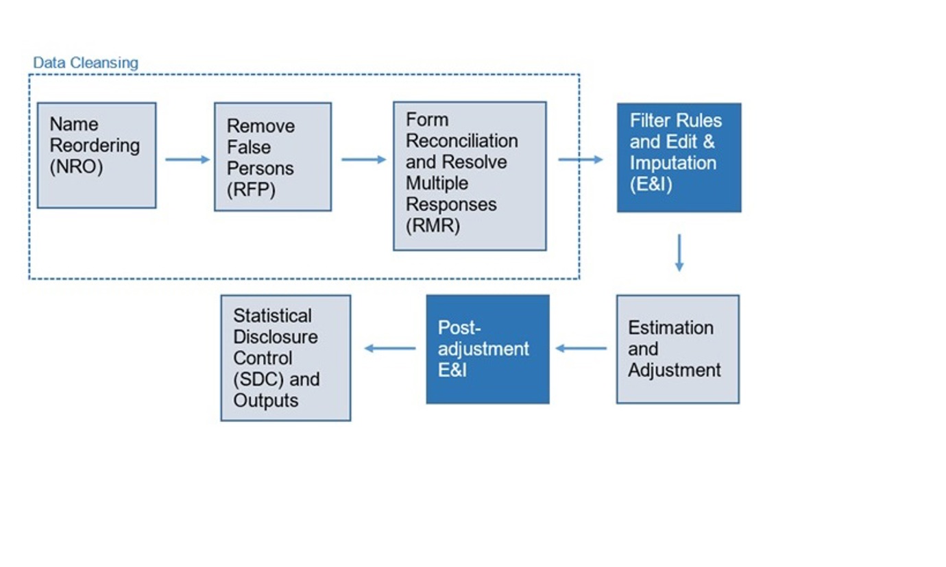 Edit and Imputation (E&I) is part of the fourth step of the census data processing journey as well as part of the sixth.